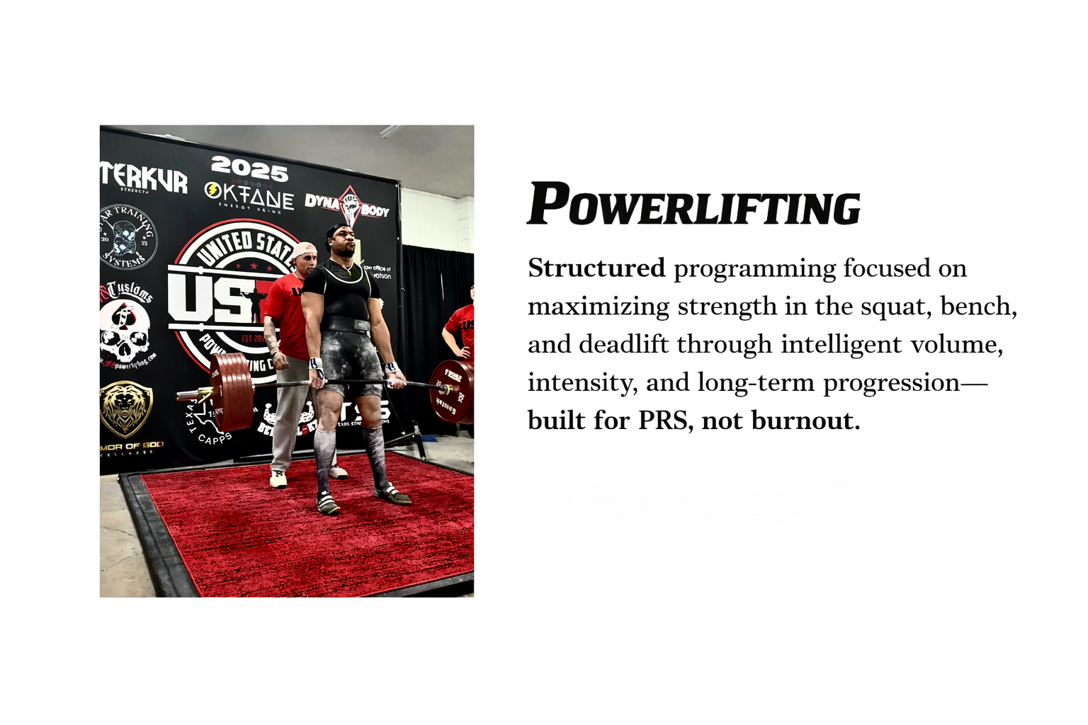 I specialize in developing intentional training systems — not random workouts — designed to build strength, resilience, and long-term performance.
