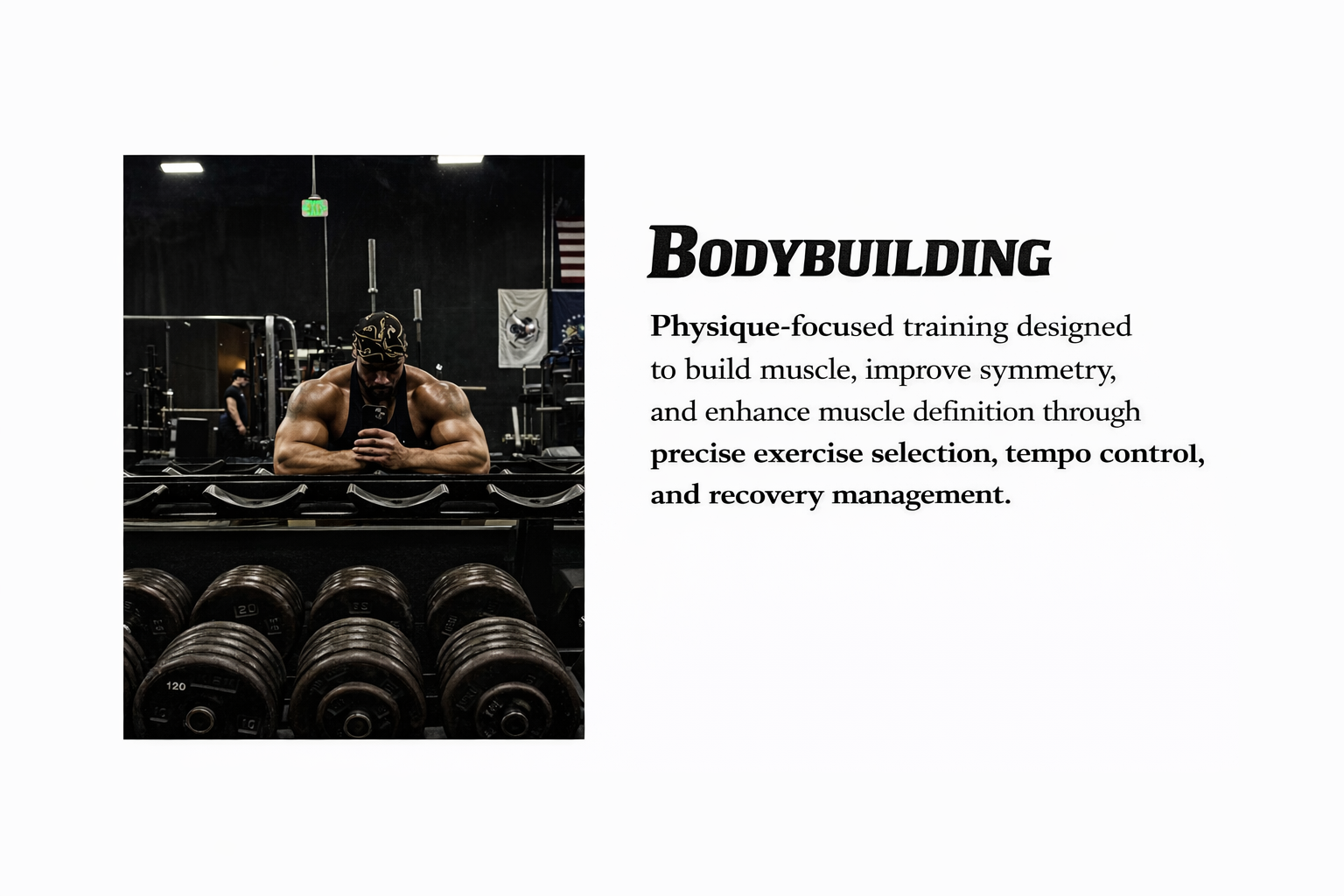 My approach blends science, experience, and execution, ensuring every rep, set, and phase of training moves you closer to measurable results — stronger, more capable, and built to last.